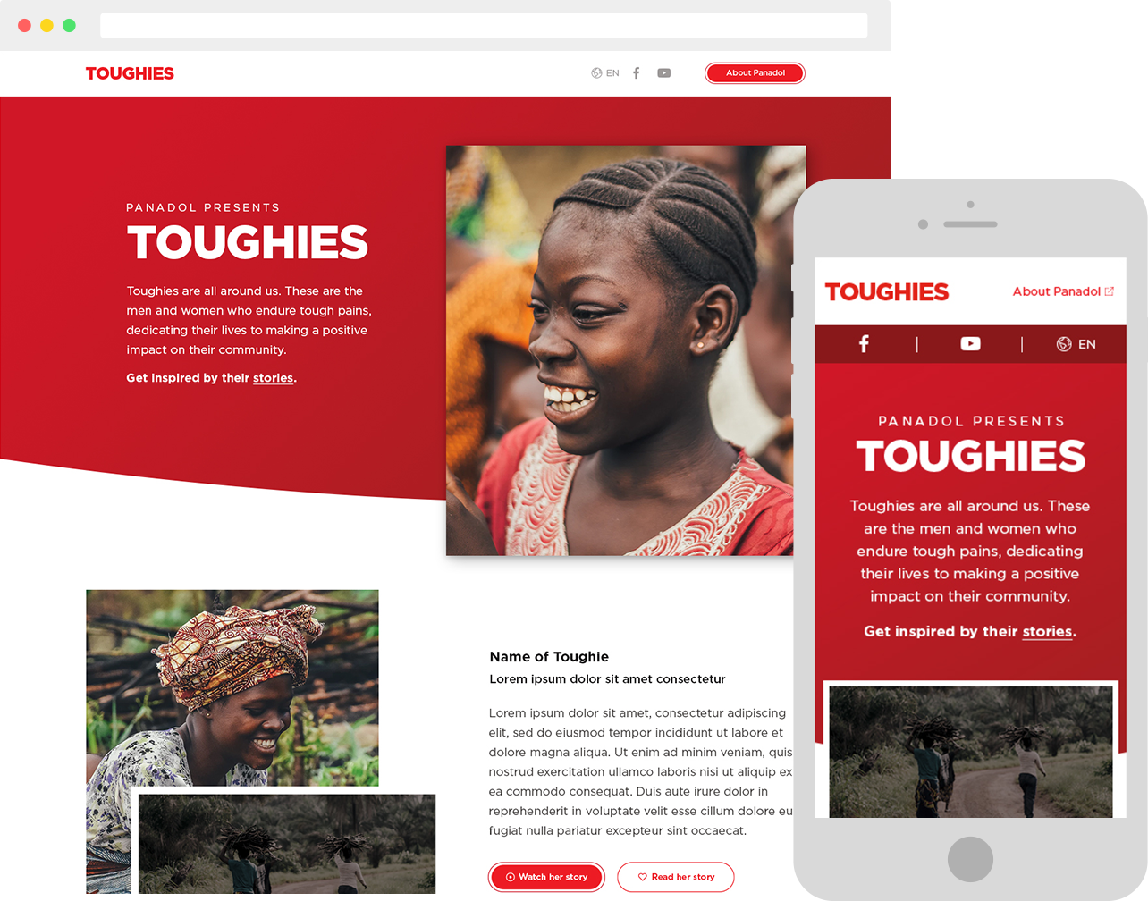I designed a responsive web template for Panadol’s global Toughies campaign. This was part of a digital toolkit that was distributed across the globe.
